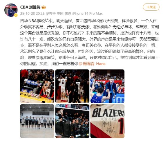 青岛男篮主帅、杨瀚森恩师刘维伟更新社媒,表示自己结束了8天4场NBA比赛的解说之旅,他见证了杨瀚森NBA生涯前4场比赛。刘维伟也是寄语杨瀚森,告诫他未来之旅不会顺利,需要变得更加强大,每一天都需要进步,也表示真正关心和在乎杨瀚森的人,会一直陪着他。