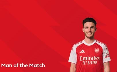 英超第7轮,阿森纳主场2-0击败西汉姆联,此役攻破旧主大门的阿森纳中场赖斯当选英超官方全场最佳球员。